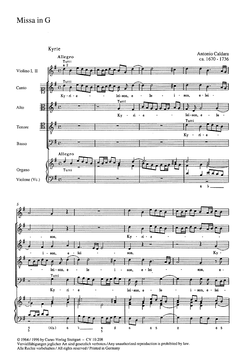 Missa in G (Messe in G) (Vokal Soli SATB; Chor SATB; 2 Violinen; Generalbass), Chorpartitur