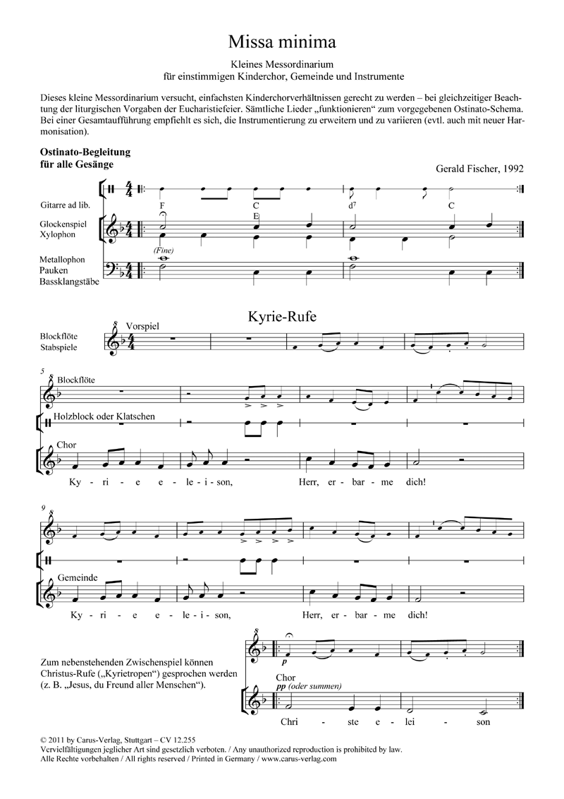 Besetzung 1stg Kinderchor; Gde (Gemeindegesang); ClFlt; Glockenspiel; Xylophon; Metallo