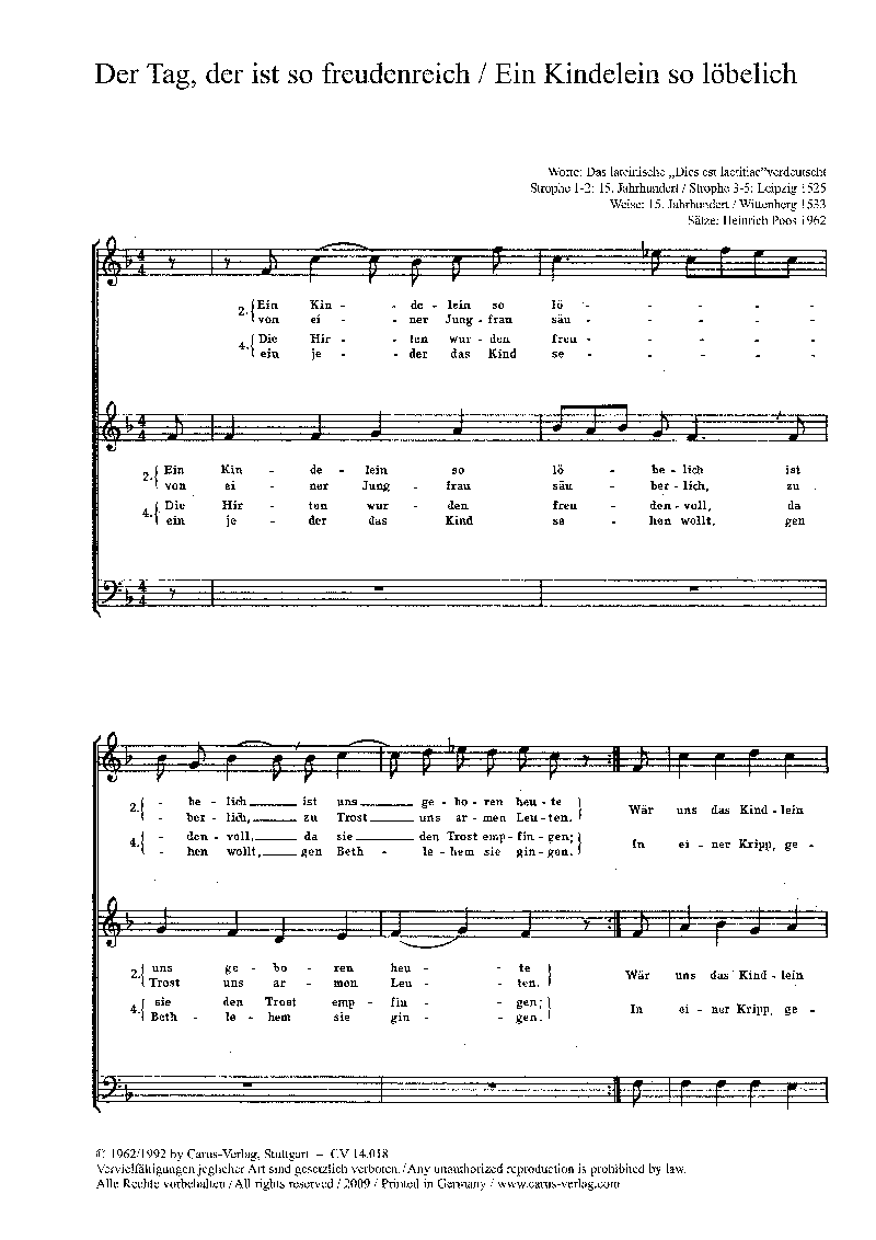 Der Tag, der ist so freudenreich - Notenbeispiel