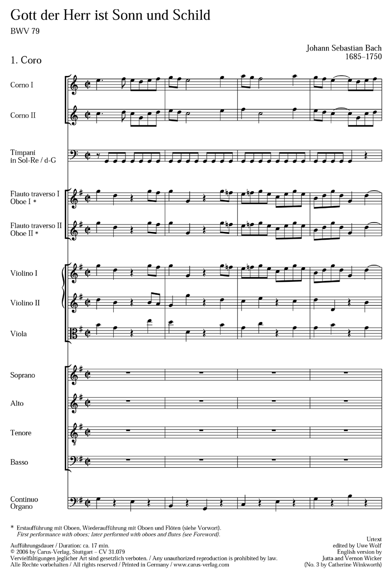 Gott, der Herr, ist Sonn und Schild - hier klicken Gott, der Herr, ist Sonn und Schild (VoSoSAB; Chor SATB; optional; 2Fl; ]; 2 Oboen; 2 Hörner; Pauken; 2 Violinen; Viola; Generalbass), Klavierauszug
