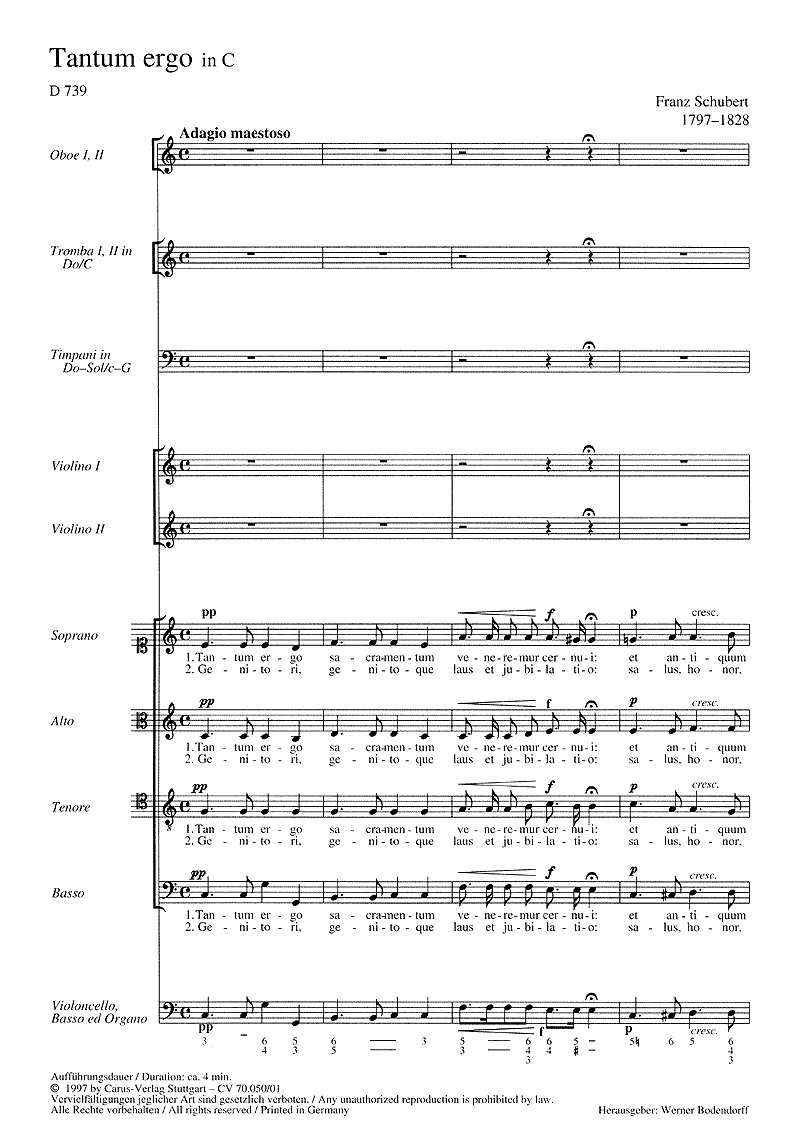 Tantum ergo in C (Chor SATB; 2 Oboen; (; 2 Klarinetten in Bb; ); 2 Trompeten in Bb; Pauken; 2 Violinen; Generalbass), Orgelauszug