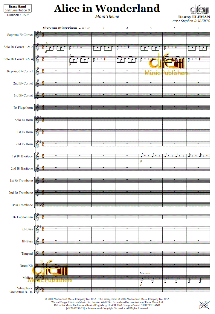 Alice's Theme (from 'Alice in Wonderland') - Notenbeispiel