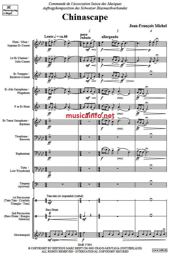 Zusatzinfo/Inhalt „Chinascape“ von Jean-François Michel ist ein Beispiel dafür, wie zeitgenössische Kompositionen kulturelle Grenzen überwinden und neue Impulse für die Blasmusikszene setzen können. Das Werk bietet Dirigenten die Möglichkeit, ihr Programm um ein Stück zu ergänzen, das sowohl musikalisch anspruchsvoll als auch zugänglich ist. Für Musiker stellt es eine Herausforderung dar, sich mit ungewöhnlichen Klangfarben und Rhythmen auseinanderzusetzen, was die künstlerische Entwicklung fördert. Insgesamt ist „Chinascape“ eine wertvolle Bereicherung für das moderne Blasorchester-Repertoire und ein Beleg für die kreative Vielfalt der zeitgenössischen Blasmusik.