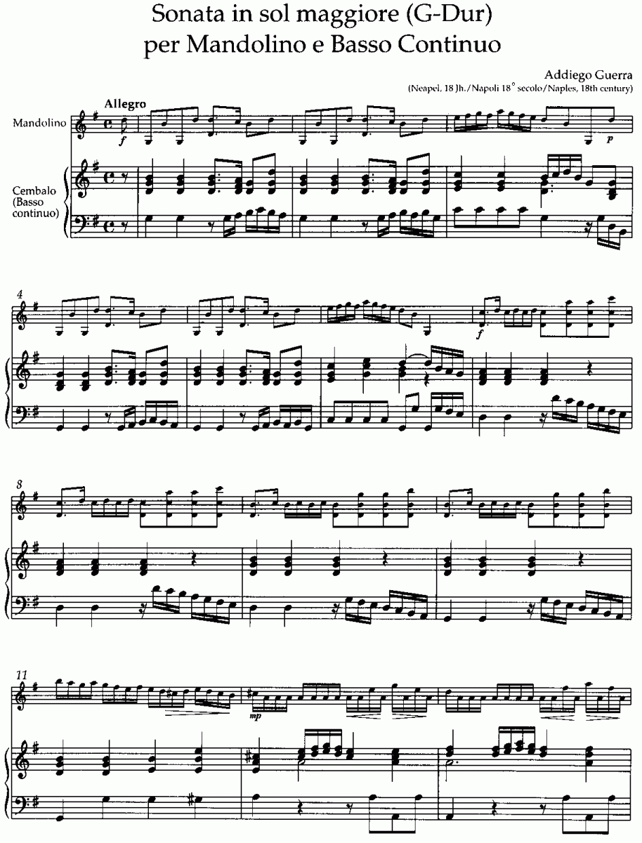 SONATA G-Dur FÜR MANDOLINE+B.C. - Notenbeispiel