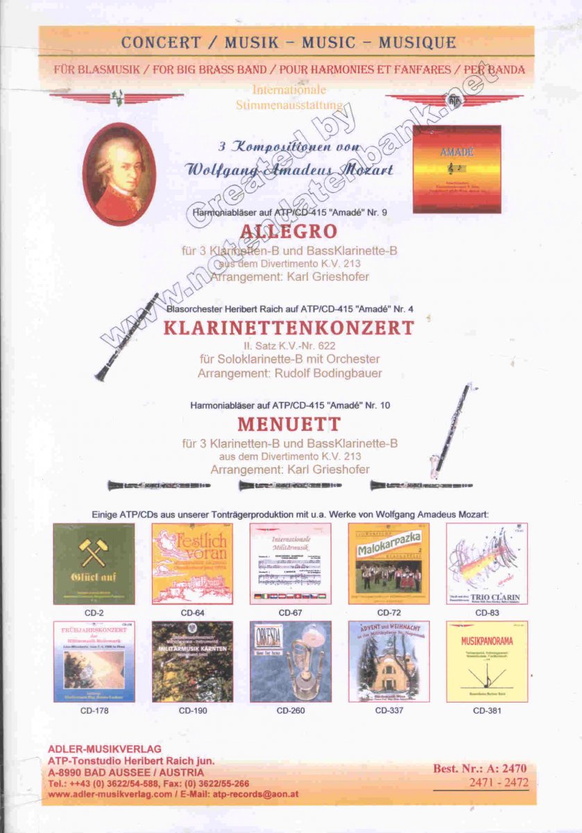 Klarinettenkonzert (2.Satz) - hier klicken Klarinettenkonzert (2.Satz) (Blasorchester; B-Klarinette), Partitur und Stimmen